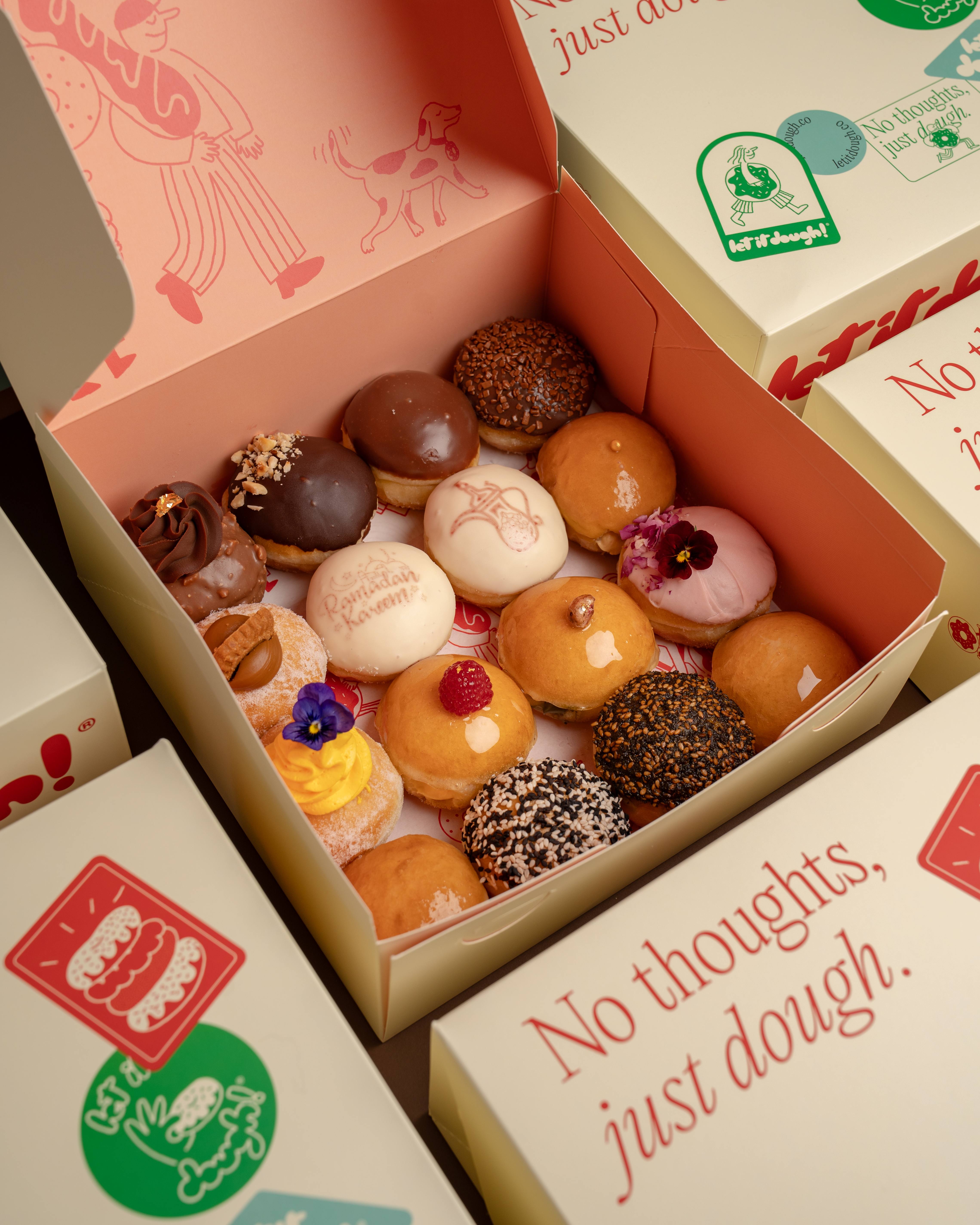 A curated collection of 16 freshly made mini doughnuts, crafted especially for Ramadan. Discover seasonal flavors like Karak Brûlée, Rose, Honey Butter, Saffron and Pistachio. Elegant, generous and made to share.