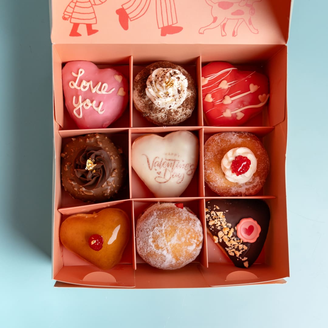 Our Valentine’s Box is here 9 handcrafted San Valentine’s doughnuts (Mixed flavors)